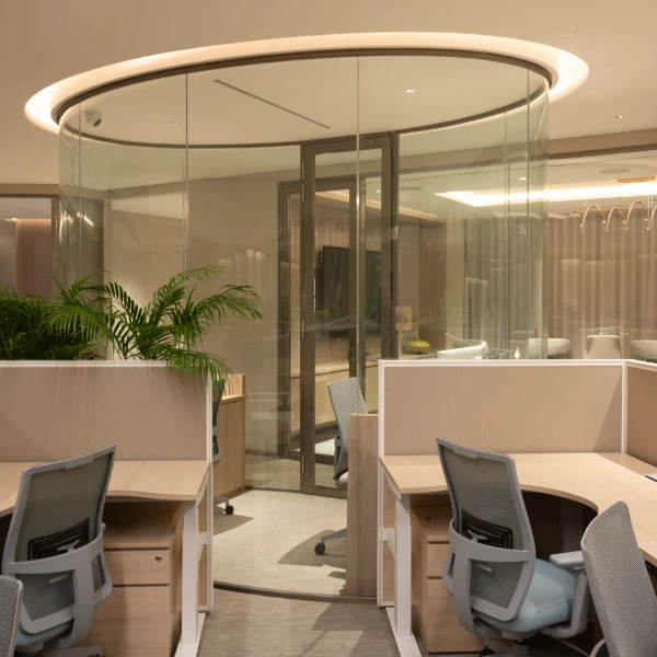 The design approach prioritises transparency and acoustic comfort, fostering collaboration and focus. With glass enclosures and double-glazed partitions, we create an open yet peaceful environment.