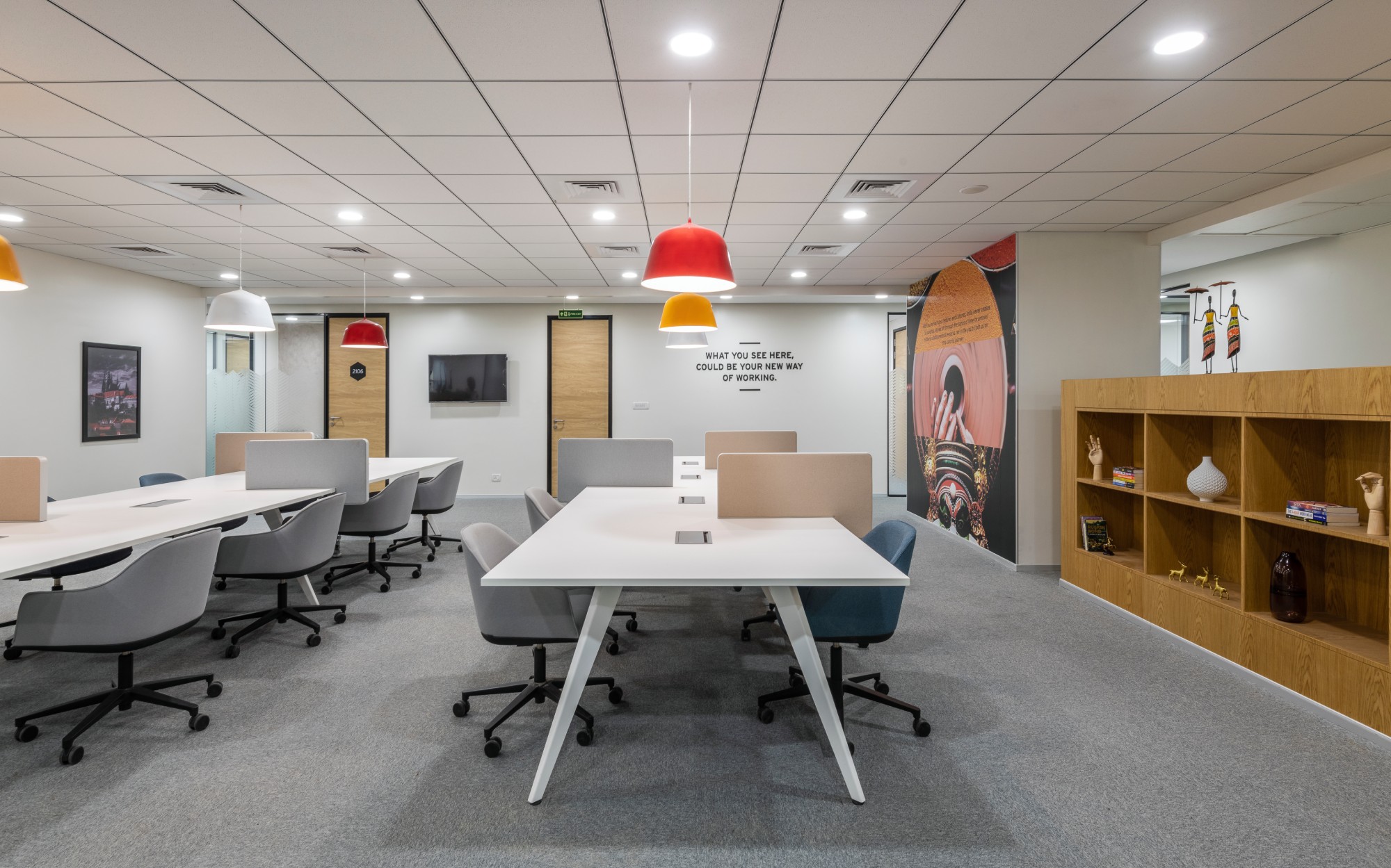 Spaces seamlessly integrates Scandinavian elegance with vibrant Indian artistry, creating a unique and inspiring workspace environment that celebrates India's rich cultural heritage.