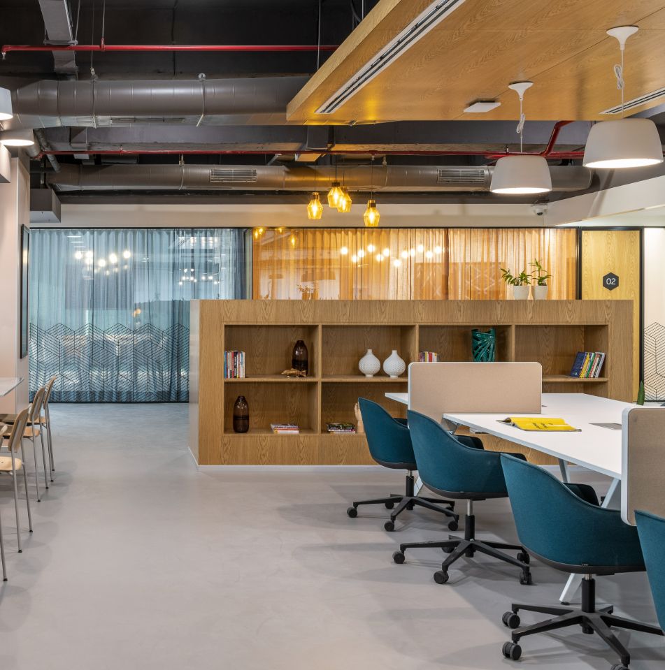 Spaces achieves a harmonious blend of aesthetics that combines Scandinavian sophistication with vibrant Indian energy, fostering creativity and collaboration.