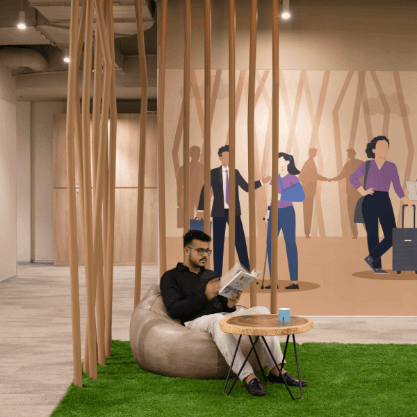 TATA AIG partnered with JTCPL Designs for the third time to create a sustainable and employee-centric office space. Inspired by the metaphor of a tree, the design represents TATA AIG’s protective policies that nurture and spread like the shade of a tree. The 60,000 sq ft space follows eco-friendly practices, with refurbished furniture and fittings to reduce waste.