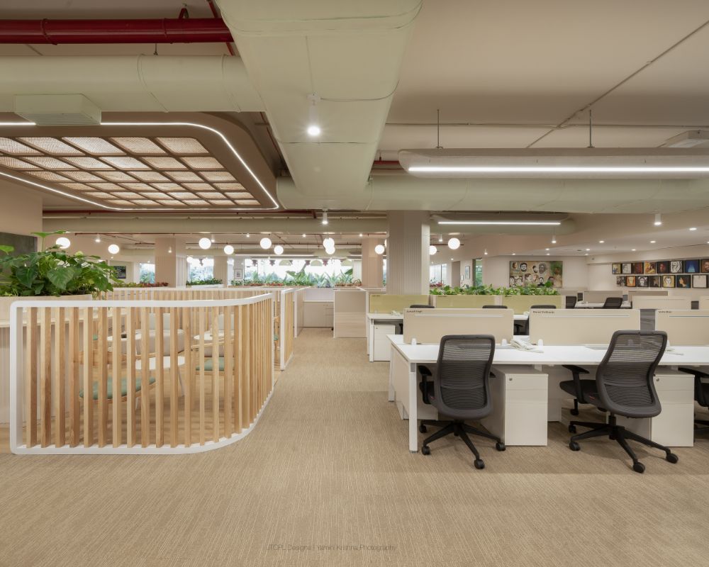 Let's delve deeper into how this philosophy manifests in our projects. Take Space 1, for instance. We embraced the Client's core values of well-being and productivity, translating them into every aspect of the design. From the spatial layout to the meticulously chosen finishes and colour palette, environmental sustainability was a constant priority. We prioritised eco-friendly materials and crafted ingenious lighting solutions that maximised natural light and ensured exceptional air quality within the workspace.